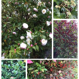 こんばんは(*´∀`) 毎年恒例11月3日文化の日のふるさと祭りに向けて、今日は地域民でふるさと村のお掃除。 疲れました~〜(ꈍ﹃ꈍ」 ∠):_ ふるさと村の木です 白花の山茶花、右でヤツデの花、ウメモドキの赤い実、下でイヌツゲの黒い実、名前のわからない実?花? それもわからない=^・ω・^=