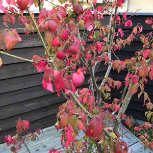 おはようございます🍁 朝は寒くなりましたね♪ コマユミに、朝日が当たって、 お庭の主役に君臨してます❣️ いいよ(*´╰╯`๓)♬❤️なごこのコマユミ🎶