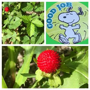 こんばんは 🏷毎月2日はスヌーピーの日に 参加させていただきます🙇♀️💕🎶 可愛い可愛いヤブヘビイチゴ🍓💚