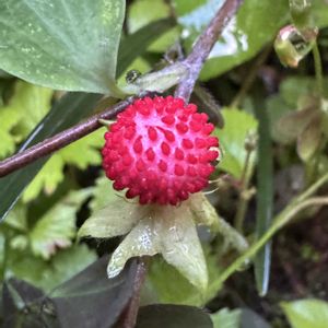 ヤブヘビイチゴ 真っ赤な実が付いています