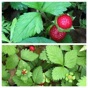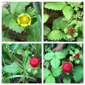 可愛いヤブヘビイチゴ🍓 写真上段 5月14日 写真下段 5月19日
