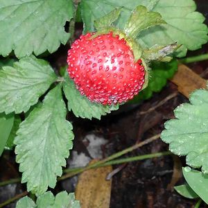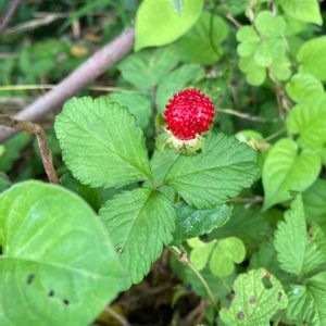 ヤブヘビイチゴの実 うちの近所でヤブヘビイチゴの花が咲いていた所は、ほとんど除草作業で刈り取られてなくなってしまいましたが、一つだけ実がなっているのを見つけました🍓