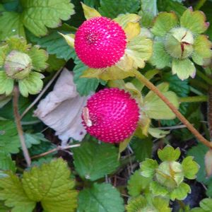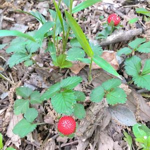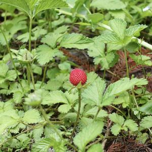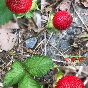 ヤブヘビイチゴ 🗒️ 果実(小さいツブツブの部分)が光沢があり、しわがない。