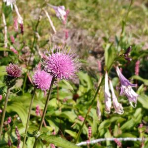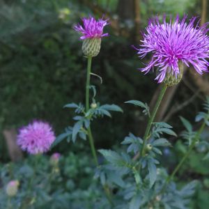 ①タムラソウ(田村草) 3年ほど前から零れ種で発芽する様になりました。 アザミに似ていますが、棘はありません。 背も高いです。 ②④薊色々 ②ノアザミ(野薊) ③④調べてみましたが判りません! 横向きに咲き、花色も薄いピンク色 ご存知の方教えて下さい🙏 ⑤ジギタリス・イルミネーションフレイム 近所の知人宅のお花🌸 春から秋まで咲く多年草のジギタリスの様です。