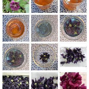 こんな時間だけど、本日2度目の投稿(*´艸`) ✨コモンマロウ✨ 沢山咲いたので、お花を摘んでおちゃにしてみた。数えながら摘んでみたら、100以上咲いてる。乾燥させること約3日。 ピンクのお花が紫に。 お湯を注いで5~6分。 薄っすら、水色が出たような出ないような💦 で、🍋汁を1~2滴垂らしてみたら、ちょっとだけ薄いピンクに。 味はほぼないので、、この間作った梅シロップと梅1個いれてみたら、、、もっと濃いピンクになりました。味は梅シロップ味ꉂ🤣ꉂ🤣ꉂ🤣 そりゃそうだ。