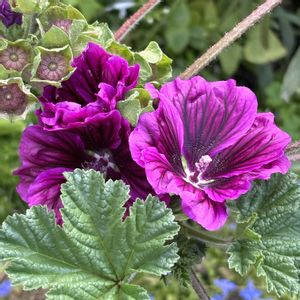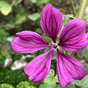 コモンマロウ 今日はお花が2輪❣️🌸🌸✨ 株は大きくなって 葉が豊かに茂っています🍀✨ 皆さんは葉っぱもたべてるのかな…😋