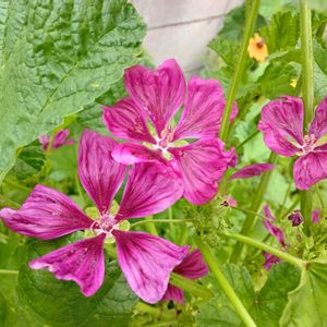 コモンマロウ 花言葉 やさしさ 気管支系の病気に鎮痛・鎮静効果が ある事に由来します💜🩷✨ 株が成長し出しました❣️😄♫ エディブルフラワーとして 存分に使える程大きくなって 欲しいです❣️😄♫