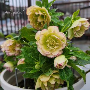❁︎クリスマスローズ横山園芸プチドール❁︎ 沢山咲いてます。(❁︎3㌢強程) 奥に見えるクリスマスローズは KAGOENクリスマスローズ八重↓右 嵐 何ですけど( ꒪ͧ-꒪ͧ)... 皆さん、大丈夫ですか。 何か飛んで 来そう 運転 しっかりハンドルもって。 (,,• - •,,)ノ″ 気をつけてね〜