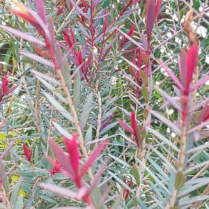 昨年、寄せ植えにいれたメラレウカ❤️ 大きくなってきた 葉の先が赤く素敵💕