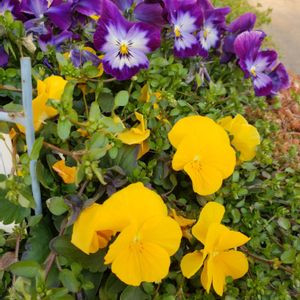 春めいてきて 花壇ビオラ元気に 雑草も増えてきたよ😆