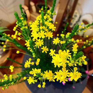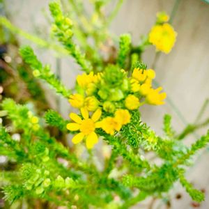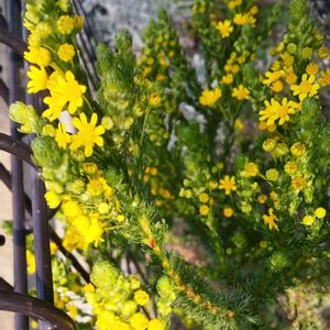 🌼ゴールデンクラッカー🌼 春を感じる〜♬ かわいい小さな黄色のお花 自然と笑顔になっちゃいます☺️ ちょい調べ👇👀 別名…ユリオプス・ゴールデンクラッカー 科名…キク科 属名…ユリオプス属 原産国…南アフリカ 花色…黄色 草丈…50㎝~150㎝ 日照…日なた ゴールデンクラッカーの花期は1月~5月。 花期になると、枝先の葉の付け根から花柄を伸ばし、花径0.5~1㎝程度の黄色い頭状花を咲かせます。 一輪の花のように見えるのは、小さな花が集まった集合花で、中心部分の筒状花と、周囲で花弁のように見える舌状花から形成されています。 目に鮮やかな黄色の小花が、枝先にこぼれるように咲く様子は華やかです。 花色は黄色のみ。 **✿︎❀︎(。◕︎ˇ∀︎ˇ◕︎人)❀︎✿︎*