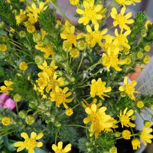 🌼ゴールデンクラッカー🌼 キク科ユリオプス属 花期1月〜5月 花色は黄色のみ 花弁に見える舌状花から形成 黄色の小花が枝先にこぼれるように咲いて華やか💕