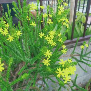 花は1〜5月で枝先の葉の付け根から花柄を伸ばし、花径0.5〜1㎝の黄色の頭状花を咲かせるそうです🥰 もちろん今は緑一色ですが、見た目ハーブかと思いました。