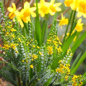 スイセン テータテートと ゴールデンクラッカー。 長い石段の途中に植えた黄色たちが あとひと頑張りの元気をくれます。