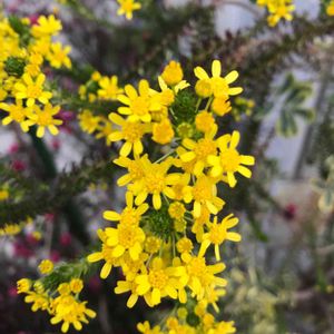横浜 山下公園の花壇に菜の花 っじゃ無いよね😆 ハーブっぽい葉だけど?