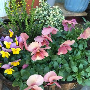 前に作った寄せ植えにお仲間を プラス 🎶ゴールデンクラッカーという 初めて見る子💕5月まで黄色い花を 楽しめるんだって