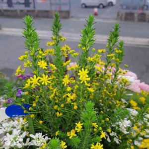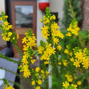 先日行ったパン屋さんの花壇に咲いていました 1Mくらいの低木?で びっしりと黄色の小花が咲いていました