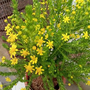 ❁. 。ユリオプスデージー'ゴールデンクラッカー。.❁ 明るい黄色の小花が咲きあふれる可愛い植物🌼 名前の通り クラッカーのように弾けるように咲きます🔆🎉 春らしいカラーでいち早く春を感じられます🌸🍡 *育て方* 日当たりが良く風通しの良い場所を好みます☀️ 水やりは土の表面が乾いたらあげてください🌱