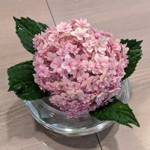 紫陽花のテマリテマリを切り花にしました。昨年は青、今年は赤で咲きました。