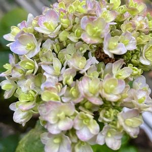 おはようございます╰(*´︶`*)╯♡ 紫陽花 てまりてまり🩵🩶💚 週末にお出かけの後、ぶらりと寄ったガーデンショップ、てまりてまりさん、気になりつつもどうしようか、もう花終わり、手前大きめのお花はまだ持ちそうですが他のお花はポロポロ落下していってるし、、😂 でもこの素敵な秋色、来年用にお迎えしちゃえ😍買ってしまいました😂 買ってから気づく、地植えにしたらピンクになっちゃうかも?ブルー系は鉢植えの方がいいのでは?😳 やっぱり来年は鉢植えのままかな😂 ③ ノリウツギ ポールスター🌸 地植えっ子でずっと育ててましたが他のお花の影になってしまって猛暑日連続の中鉢上げ、心配でしたが枯れる事なく咲いてくれました😍 ④⑤ 札行方不明の紫陽花さん ハイドランジアの何かだった様な😂 ほんとはもっと暗い色だったはずなんだけど🧐 紫陽花、咲くの遅い紫陽花、剪定は7月の終わり頃って咲いたばっかりでカットしちゃうの〜?ってカットできずにお花楽しんでしまってます😂 深く剪定したら来年咲かなくなるし、お花の下で剪定したら花瓶から落ちるし😅 今日は久しぶりの陽射し😍 ジメジメ湿度、花壇も鉢植えもずっとびちゃびちゃのまま💦色んな虫が💦 ☁️/🌤️ 32℃/22℃ 追記✍️ ④⑤、きっとディープレッドだと思います😁ビビビ🙋♀️