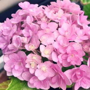 お隣さんにセリンセとオダマキの種あげたら、挿し木成功した紫陽花いただきました。テマリテマリという種類?小花で可愛い💓