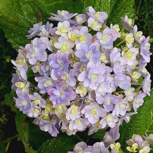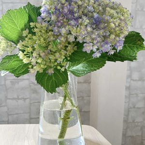 おはようございます☀ あっという間に終わりを迎える お盆休み😥 バタバタ忙しかったけど金曜日 土曜日と短い時間だったけど お孫ちゃんに会えて嬉しかった です🎵 でも明日からまた仕事だ ~ 😮💨 ① 朝水遣りしてる時に黄緑色の 塊を見つけて😳 てまりてまりに小さな小さな めっちゃ小さなお花が咲いて ました ~ 🙌 暑くて調子が悪くなるお花が 多い中可愛いお花を見せて くれてありがとう😊 ② 娘が仕事場からもらってきて くれたコチラは大きな大きな 顔が隠れそうな程立派な 紫陽花💠💠💠 涼しげな色合いが素敵🩵🩵🩵