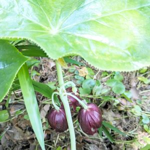 ✿GS今日のお花✿ 💚クマガイソウ💚 ①②③クマガイソウ 土から20cmほどの高さに袋状のお花 ランの一種、多年草 環境省絶滅危惧 日陰で咲いてました。 ④ハッカクレン(八角蓮) 太い茎の先端に大きな角のある葉を2枚広げ葉の下に赤褐色の花を数輪咲かせる。 蓮に似た葉の角の数から名前がつく。 ⑤ハッカクレンの花♥️♥️♥️(蕾?) 4月27日 森林散策路にて
