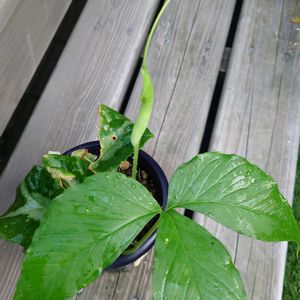 今日の花 カラスビシャク ハッカクレンの鉢にひょっこり出て来たのに、今朝の水やりで気づいた〜ナイスタイミング✨💚