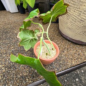 夏の間かなり乾かしぎみで玄関室内で育てたハッカクレンが、葉の自重に耐えきれずに折れ曲がってきました 彼岸後の施肥をして、壺の陰で休眠を待ちます 次の年の芽も育っていて、一つフライングして小さな葉が出ています 休眠後に新しい土に植え替え予定
