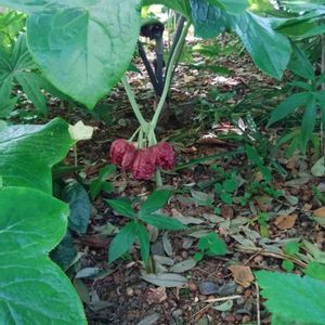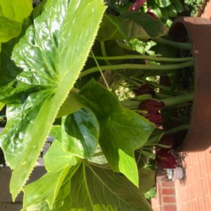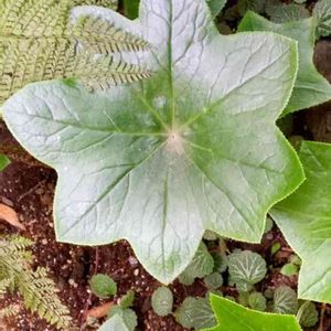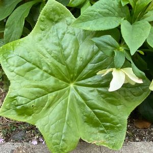 ハッカクレン(八角蓮) メギ科 2枚の葉の付け根部に花が咲いてるので「タイワンハッカクレン」だと思います☘️ 毎年 花が咲き…今年は実生からいくつか発芽しました☘️ 葉が大きすぎるので… 増えても…ねぇ~😱