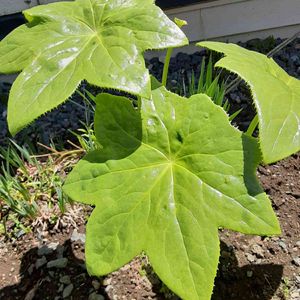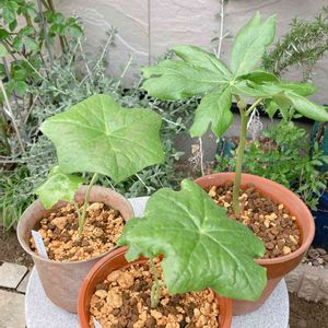 葉が特徴的な、 ⬆️がハッカクレン、中国・台湾原産 ⬇️がアメリカハッカクレン、正式名はポドフィルムの方かな❓北米原産 ともにまだ幼葉でデカくなります😍