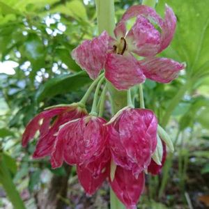 おはようございます😃 八角連(ハッカクレン) メギ科 ハッカクレン属 茎の途中に 傘をさしたように 咲く花です❣️ 初めて見ました😄 咲いた所も見たかったな〜〜😊 ピンクや白の花もあるそうです😊 植木市にて🌱