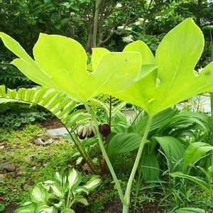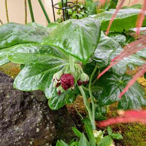 旅先のホテルで見つけた初めましての植物です。 あれっ?キウイ🥝?と思って近づきましたら八角蓮 とありました。 ハジメマシテ💕ハッカクレンさん