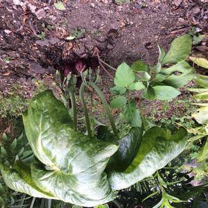 ハッカクレン(八角蓮)です 八角の葉を撮ろうとしたら、大きすぎて 葉の下の赤色の花が見えなくなりました💧 花も不思議な花です… パッと咲くのを期待して待ってたら、そのままでした… 頂きものの八角さん、ちゃんと花咲いて良かったです😊