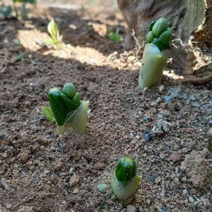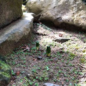 雨の中しばらくほっておいたら新芽が出ました、まるで🍄みたい、ホントに新芽?
