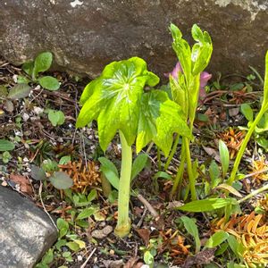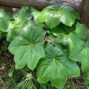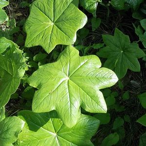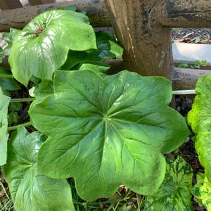 *八角蓮(ハッカクレン) 「ばぁば、 かくれんぼしよう」 孫に揺り起こされた。 初かくれんぼ 🎶 残念…うたた寝中の 空耳だった🤫 蓮に似た葉の角の数 から八角蓮と呼ばれる。 和名 : ハスノハグサ