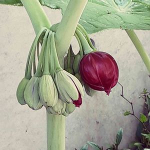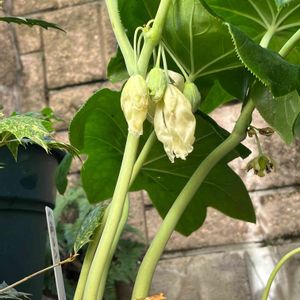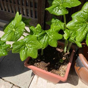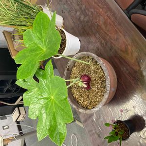 昨年迎えた八角蓮が咲きました。 鉢植え🪴ですが、株が大きくなって葉っぱも巨大化しています😱