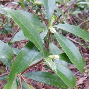 コショウノキ[胡椒の木] ジンチョウゲ科ジンチョウゲ属 白い沈丁花によく似ていますが、香りは殆んど無く、葉も柔らかめです。 和名は実がコショウのように非常に辛いことに由来。 関東地方以西の太平洋側~沖縄の林内に自生