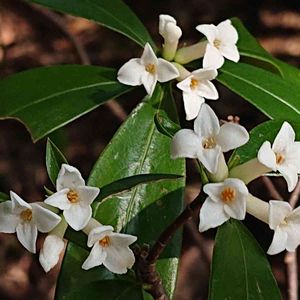 🌱コショウノキの花 名前からはあの香辛料を思い浮かべますが全く別です。 ジンチョウゲ科の低木でジンチョウゲと同じく芳香が強く花も白花は良く似ています。 初夏に赤く熟す実が辛みがある事が名前の由来です。 国内のジンチョウゲはすべて栽培種ですがコショウノキは自生しています。 エリアによっては絶滅危惧種の指定を受けているそうです。 いつも歩く山道で今満開になっていました。