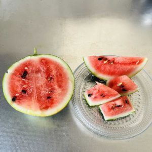 直径12cmの出来損ないスイカですが甘くて美味しかったです🍉 水やりを頑張ってよかったです😋 ワンコも喜んで食べましたぁ〜🐶