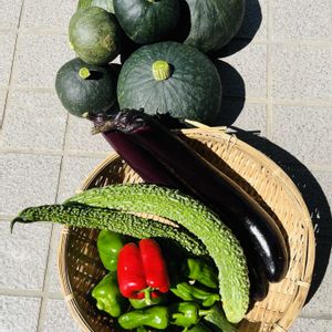 野菜を収穫しました🫑 かぼちゃは大小ありますが美味しくいただこうと思います🎃