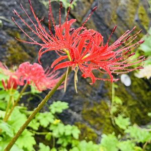 赤の彼岸花、、、 ゴーヤやかぼちゃの葉の隙間からニョキニョキと顔を出しました☺️