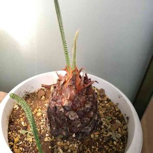 去年の11月ごろか、 黄色く枯れかけた葉だけがついて、根もほとんど腐ってるように見えるこのソテツを譲り受け、 植え替えて見守ってきました。 葉は自然に落ち、土に塊が刺さってるだけの期間が長かったですが、最近、動き始めました。 鉢底からも根が出てきてます。 ソテツの新芽は、GSさんのを拝見し、うらやましいな~と思ってましたが、不思議な見た目で良いですね。 ただ、手前の一本は不思議。根着いたことを喜びつつ、いきなり抜いてみたくなります。