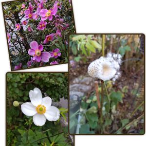 シュウメイギク(秋明菊) キンポウゲ科アネモネ属の多年草 別名 キフネギク(貴船菊) 名前に「キク」がついていますが、 アネモネの仲間だそうです。 花弁に見える萼片が散って、切らずにそのままにしていると、 花茎の先に、玉のようなものが、しばらくの間、残っていて、 棒つきキャンディー🍭のようにも、何となくみすぼらしくも見えるのですが、 2、3ヶ月くらい経って、モコモコと、綿毛が飛び出して、変身しました((^o^)