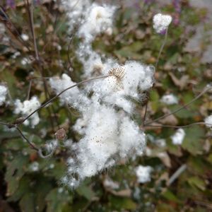 大草牡丹、秋明菊、曙草の開花後🌿 ①オオクサボタン(大草牡丹)の綿毛 雌雄異株で、痩果には長く伸びた花柱に羽毛状の毛があり、風で種子が飛散する。 ②シュウメイギク(秋明菊)の綿毛 ③アケボノソウ(曙草)にも実が… 種が採れたら嬉しい♡
