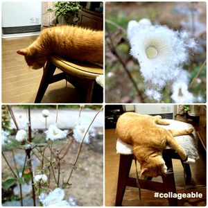 M1グランプリを見ていたら寝てしまって、いつの間にかこんな時間に‼️ ニャンニャン祭り滑り込みです💦 1枚目 エルくん落下5秒前⁉️ 猫は液体と言うけれど、私はスライムだと思っています。椅子の上で寝ているエルは少しずつ垂れていってついに落下… いいえ、私が見ている時はちゃんと姿勢を戻しますよ。 白い綿毛はシュウメイギク。我が家の庭で風に揺れています。遠くから見ると餅花のようです。 2枚目 息子がドーナツ型の猫のおもちゃを買ってきました。猫は箱が大好き。吸い込まれるように入って行って、中をグルグル回ります。ゲラゲラ笑っていると猫も気がつき、「してやられた💦」ときまり悪そうに出てきました。 写真は、まだしてやられていることに気がつかないアカリ。ドーナツの中を探検中です。 今年のニャンニャン祭りも今日でお終いですね。たくさん癒していただきました。どうもありがとうごさいました。来年もよろしくお願いします。