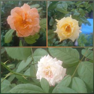 雨の中、今日咲いたバラ🌹 レディエマハミルトン トロピカルシャーベット ジュビレ・デュ・プリンス・ドゥ・モナコ 空気中かなりの湿気で、何もしてなくても幻想的な写真に。 今日はかなり小さな花ばかりだけど、それが可愛い仕上がりになりました。