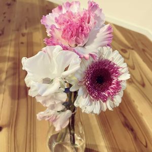 姪っ子にお花を貰った☺️ 嬉しい🥹 ピンクで春らしい❣️ お花の贈り物って、自分ではあまり選ばない色もあったり、誰かの事を思って選んだり、選んでもらったり嬉しい贅沢品だ🥹