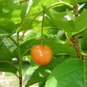 ・。♪*+o 笑顔咲ク 君と 繋がっていたい もし あの向こうに 見えるものが あるのなら 愛し合う ふたり 幸せ の 空 隣 どおし あなた と あたし さくらんぼ ...♪*゚ シナミザクラ 支那実桜 別名 カラミザクラ 唐実桜 中国桜桃 暖地桜桃 バラ科 サクラ属の落葉小高木 桜の1種。 閉園中と知りつつ 植物園の外側から 見える木を 目当てに 通ってました。( ユリノキとかね) きゃ~ さくらんぼ 見っ~け 外側から 覗いて 撮影してるので 名札が見えません。 う~ん 困ったなぁ… オウトウ黄桃かなぁ??? うーん。。。。。 やっとわかったので 今頃 投稿します。 まず、実桜は 主に 二種類あるそうです。 ・ セイヨウミザクラ(西洋実桜、甘果桜桃) 寒い地方で育つ 私たちが 果物として 食べる さくらんぼ 桜桃(おうとう)は こちらに 含まれます。 歌の さくらんぼも きっと こっちですね。 ・シナミザクラ(支那実桜、暖地桜桃、中国実桜) 暖かい地方でも育ちやすい この写真の、シナミザクラは 酸っぱいんだそうです。 撮影 2020 5/5