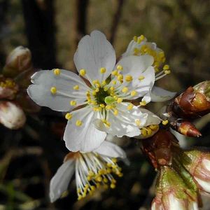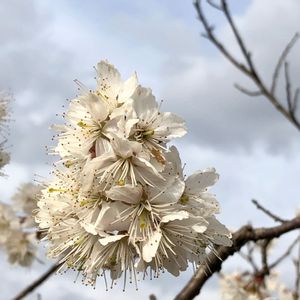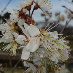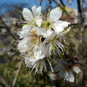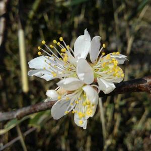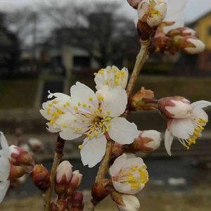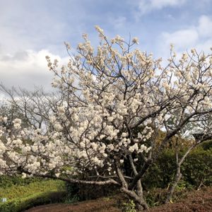 おはようございます😃 椿の小径のある場所の畑側です。 桜の木が数本あります。 私は、毎年、ここで花見をします。 市の史跡、弘法大師の井戸跡で、ベンチもあるので、コンビニ弁当🍱を持参して食べます。 それはソメイヨシノで、まだ咲いていません。 これは早咲きの一本です。 ほんのりと桃色が入った白い花です。 雄しべがとても長くて梅のようです。 花びらの先が割れているのが桜とGSで教えていただきました。 この桜の実は大きな実です。 去年、赤いサクランボを数個食べました。 個人の畑で、たまたま畑作業をしていた女性にいただきました。 とても甘くて美味しかったです。 売られているサクランボよりはやや小ぶりですが、立派な実です。😘 サクランボの花、シナミザクラ。 これが、この桜の品種名だと思います。